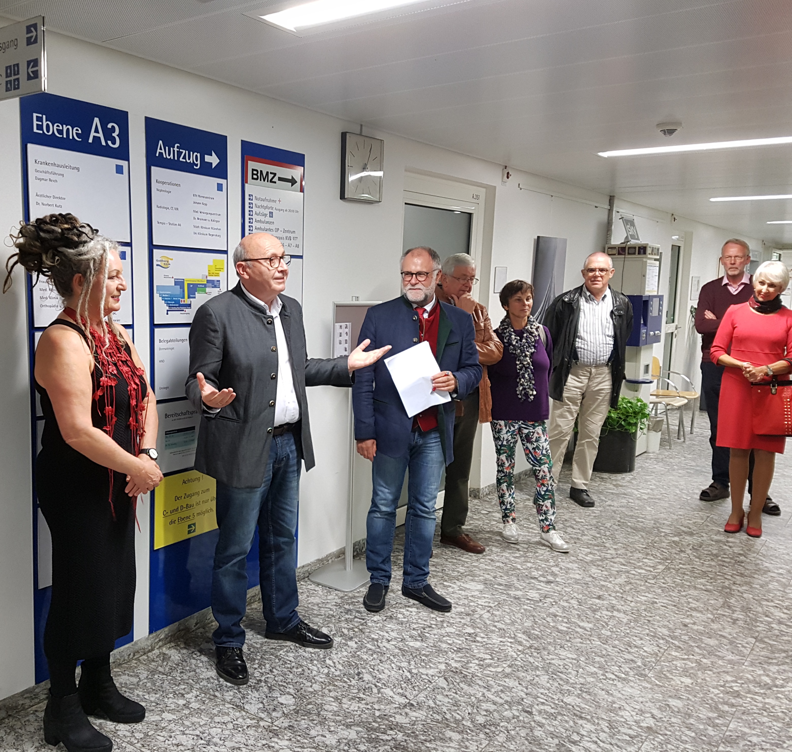 Dr. med. Norbert Kutz, Ärztlicher Direktor der Goldberg-Klinik: „Kunst hat eine wichtige Funktion in unserer Klinik. Zum einen soll sie Patienten in schwierigen Lebenssituationen den Aufenthalt etwas angenehmer machen und dem Haus ein menschliches „Antlitz“ geben. Zum anderen sind unsere Ausstellungen für die Menschen im Landkreis auch eine gute Gelegenheit, nach Kaffee und Kuchen in unserem Bistro, die Klinik kennenzulernen.“