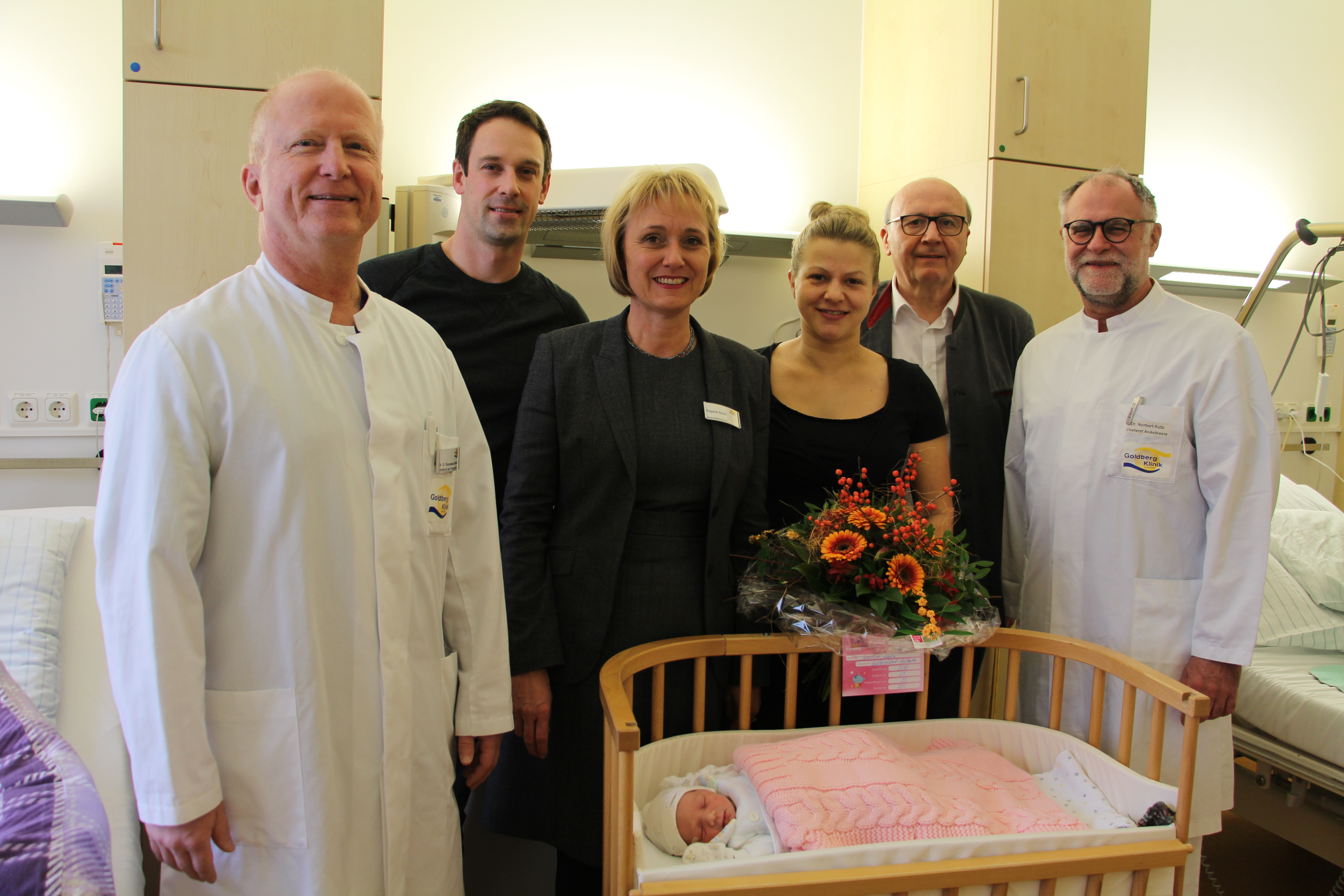 Das Jubiläumsbaby der Eltern Sarah und Georg Lickleder wurde am 5.12.2018 von Martin Neumeyer, Landrat und Aufsichtsratsvorsitzender,  Geschäftsführerin Dagmar Reich, Chefarzt Dr. Univ.  Asuncion Gonzalez Heiberger und Dr. med. Norbert Kutz, Ärztlicher Direktor, besucht.