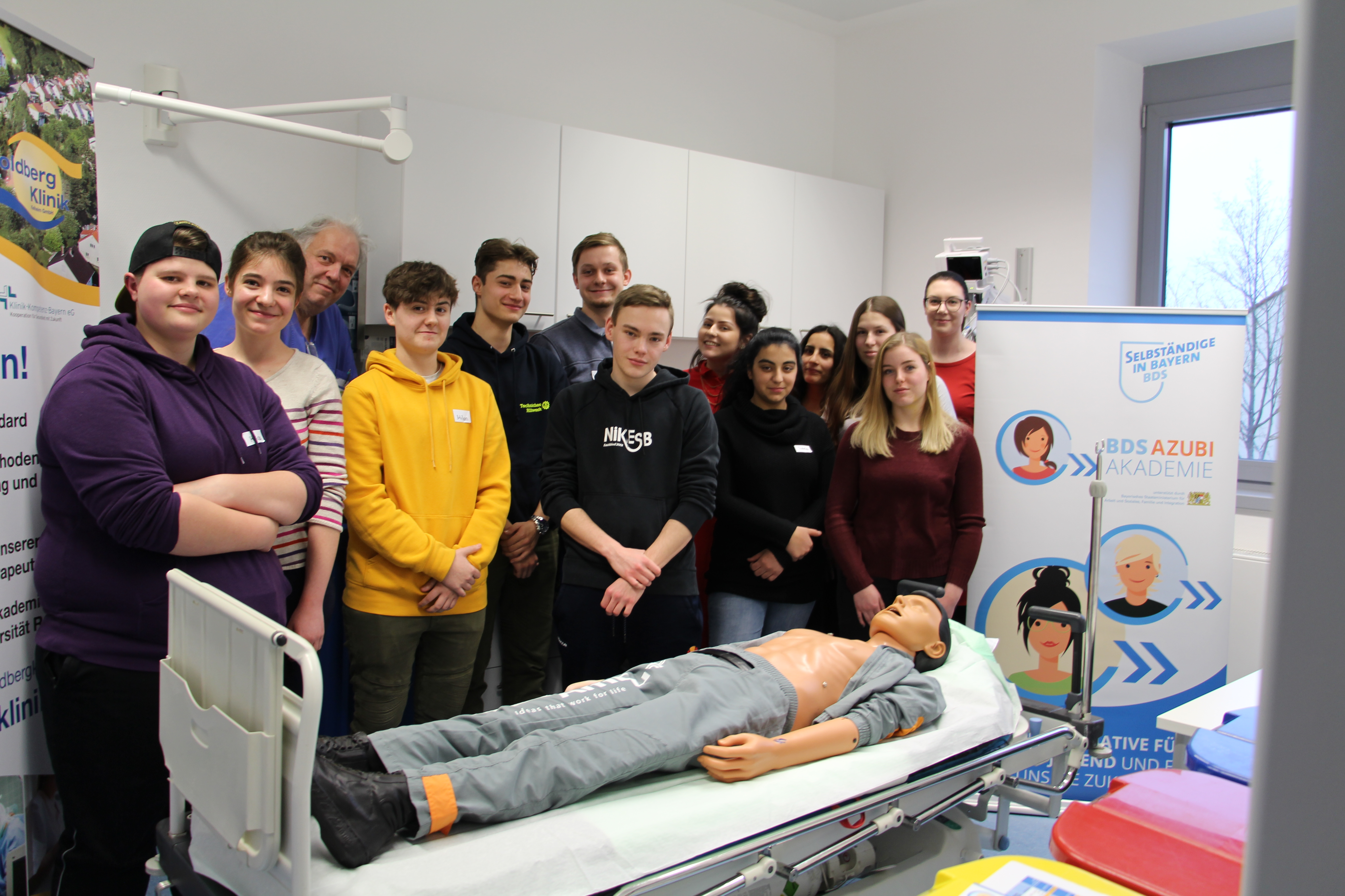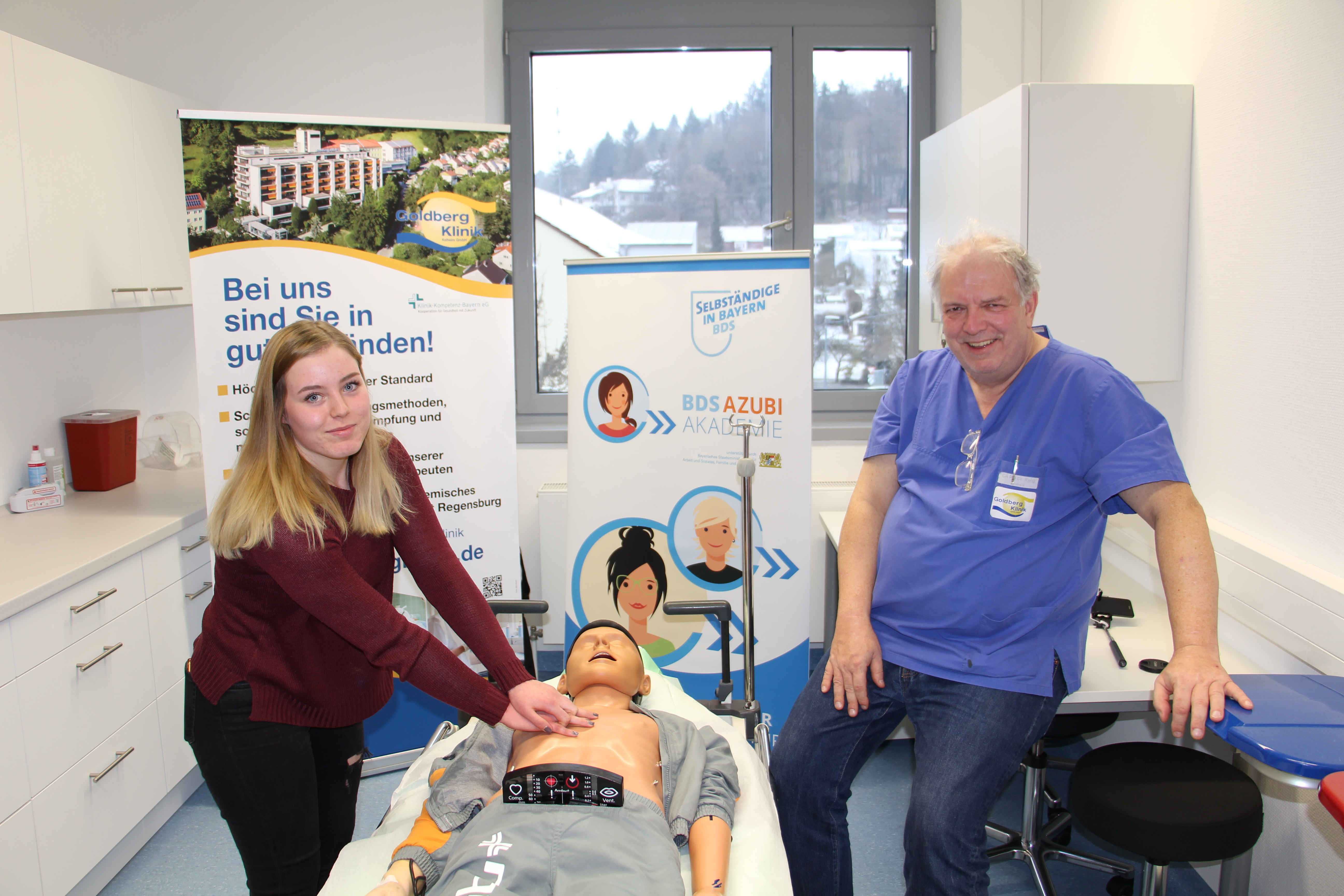 Kelheim, 24.01.2019. Gestern fand die erste Veranstaltung der im Landkreis Kelheim neugegründeten BDS Azubi Akademie an der Goldberg-Klinik statt. Auf dem Stundenplan stand das Thema „Leben retten leicht gemacht“. Chefarzt PD Dr. med. Michael Reng und stellv. Pflegedirektorin Veronika Habicht zeigten den Auszubildenden einfache Mittel zur Rettung, wenn es zu einem Notfall kommt. Bei praktischen Übungen gab es wichtige Tipps und Tricks zum Selbstschutz und Schutz anderer.