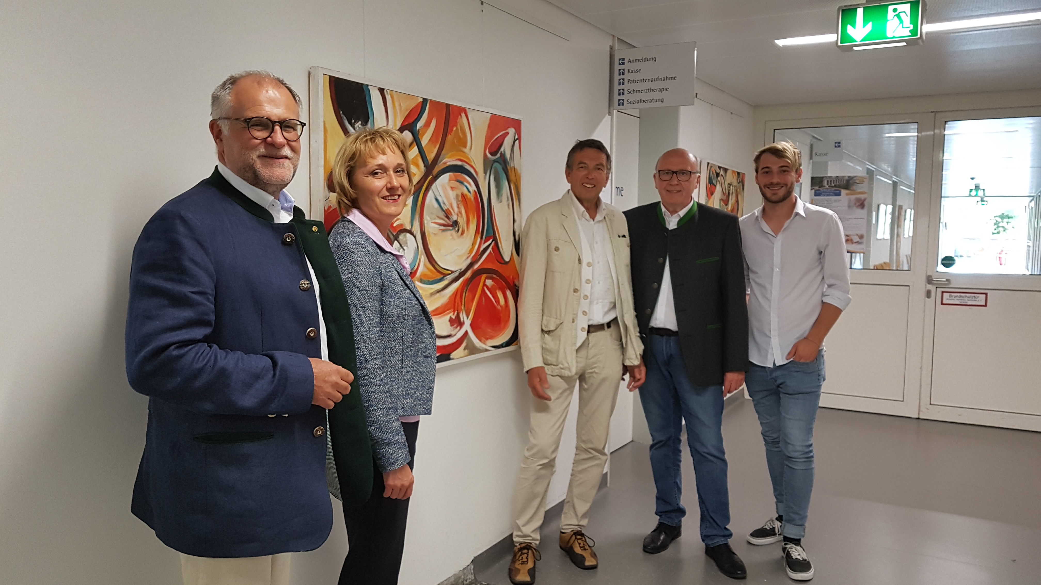Nach einleitenden Worten von Martin Neumeyer, Landrat und Aufsichtsratsvorsitzender, und Dr. med. Norbert Kutz, Ärztlicher Direktor, präsentierte der Künstler bei einem Rundgang seine Werke. Der Singer/Songwriter Tom Eberl gestaltete den musikalischen Teil der Veranstaltung.
