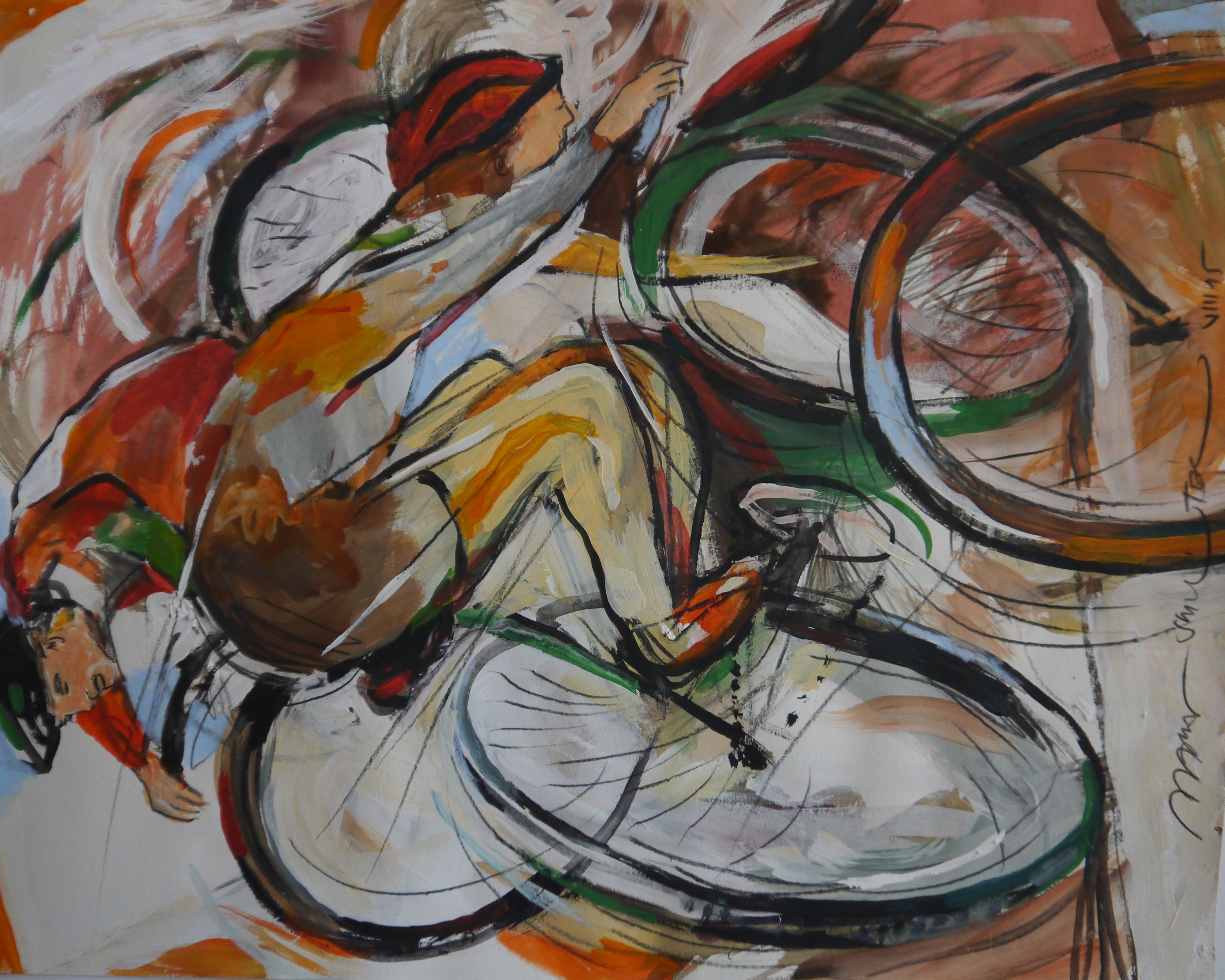 Bildinhalte von Matthias Schlüter sind in erster Linie der Mensch (in Aktion, in der Hektik, im Dialog), Landschaften, Städte, Verkehr und Technik. Schwungvolle Dynamik und Tempo drücken seine Bilder aus, eine spielerische Gelöstheit und erdige warme Farbgebung, die zunehmend farbiger und in Rottönen angelegt sind.