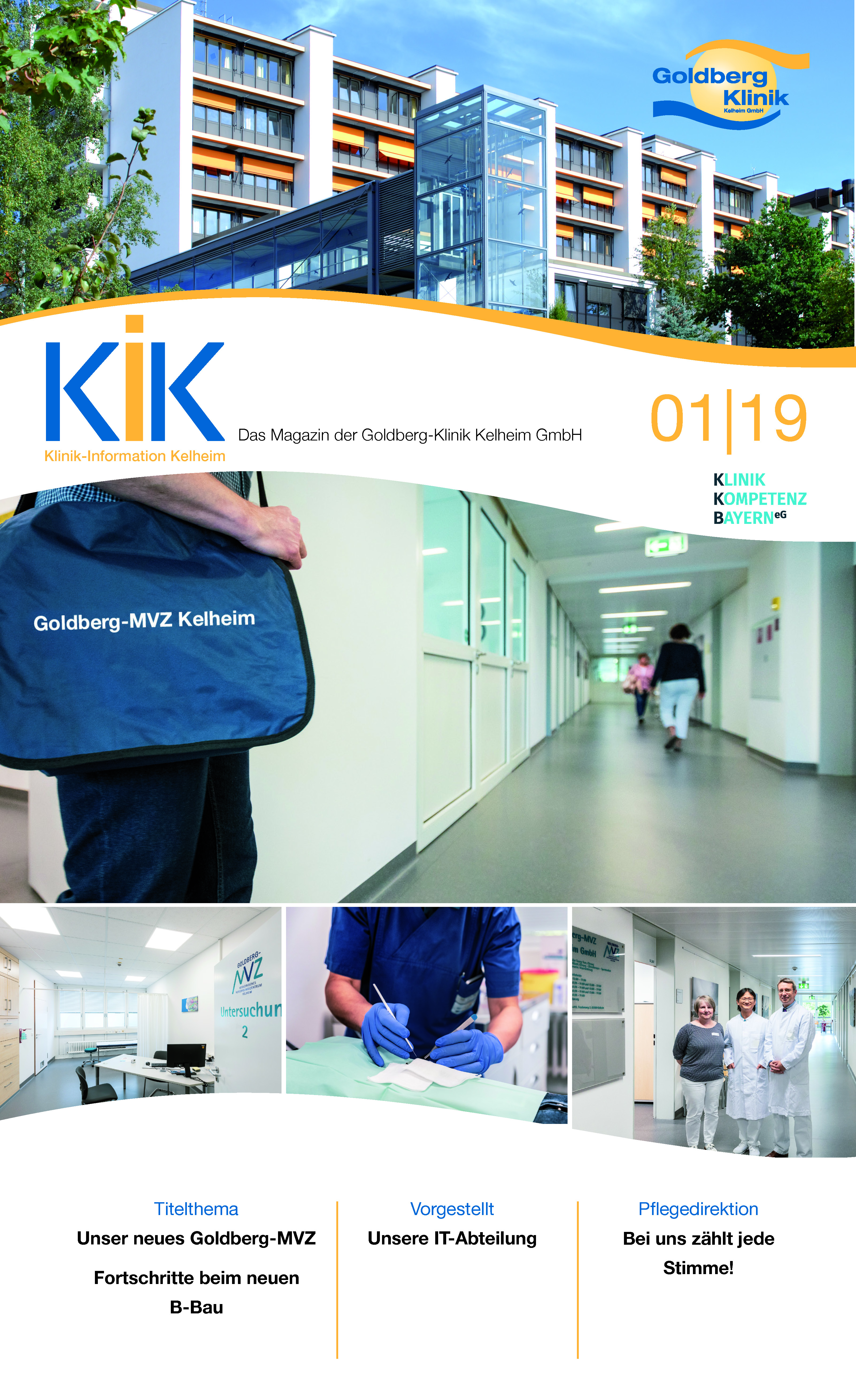 Kelheim, 19.08.2019. Wir freuen uns, Ihnen die Sommerausgabe unseres Krankenhaus-Magazins KIK (Klink-Information Kelheim) vorstellen zu dürfen. Neben ihrer Funktion als Mitarbeiterzeitung richtet sich die KIK zukünftig auch an Patienten, niedergelassene Ärzte, Besucher und Freunde der Goldberg-Klinik. Wir möchten so mit einem ansprechend gestalteten Medium unkompliziert und aus erster Hand über Neuigkeiten aus unserem Krankenhaus informieren. Der bewährte Erscheinungsrhythmus mit einer Sommer- und einer Winterausgabe bleibt bestehen.
