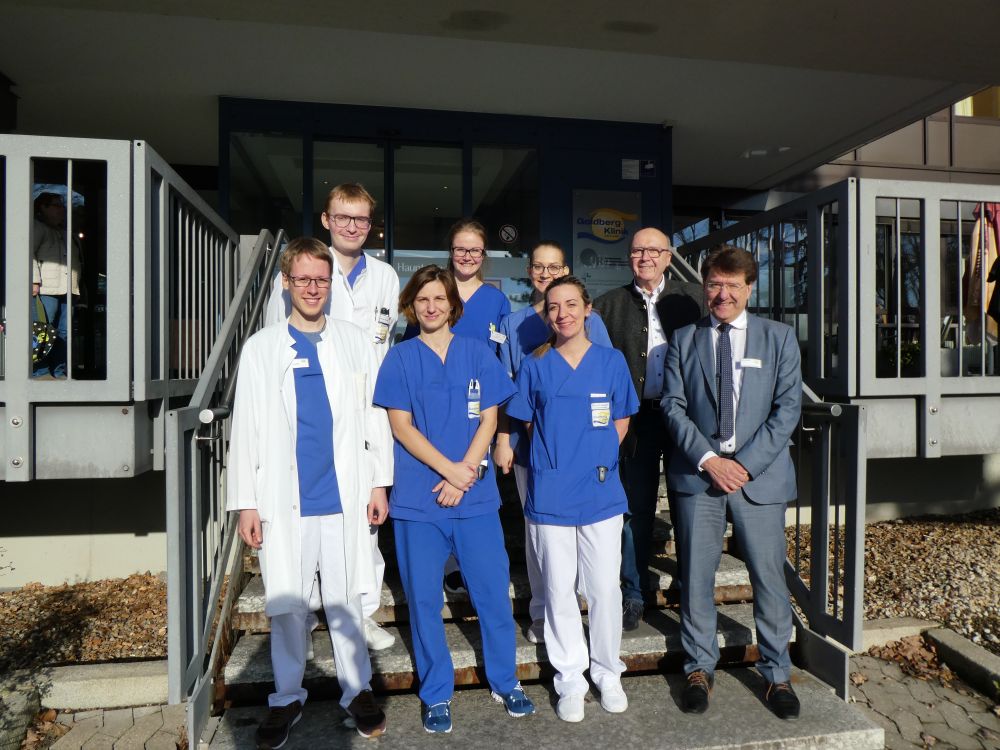 Prokurist und Personalleiter Franz Kellner erläutert, dass „Sieben auf einen Streich“ außergewöhnlich sind. Er stellt erfreut fest, dass in den Fachabteilungen Chirurgie, Medizinische Kliniken I und II sowie der Frauenklinik aktuell alle ärztlichen Stellen besetzt werden können. In der Fachabteilung Anästhesie läuft derzeit das Auswahlverfahren für eine vakante Stelle.