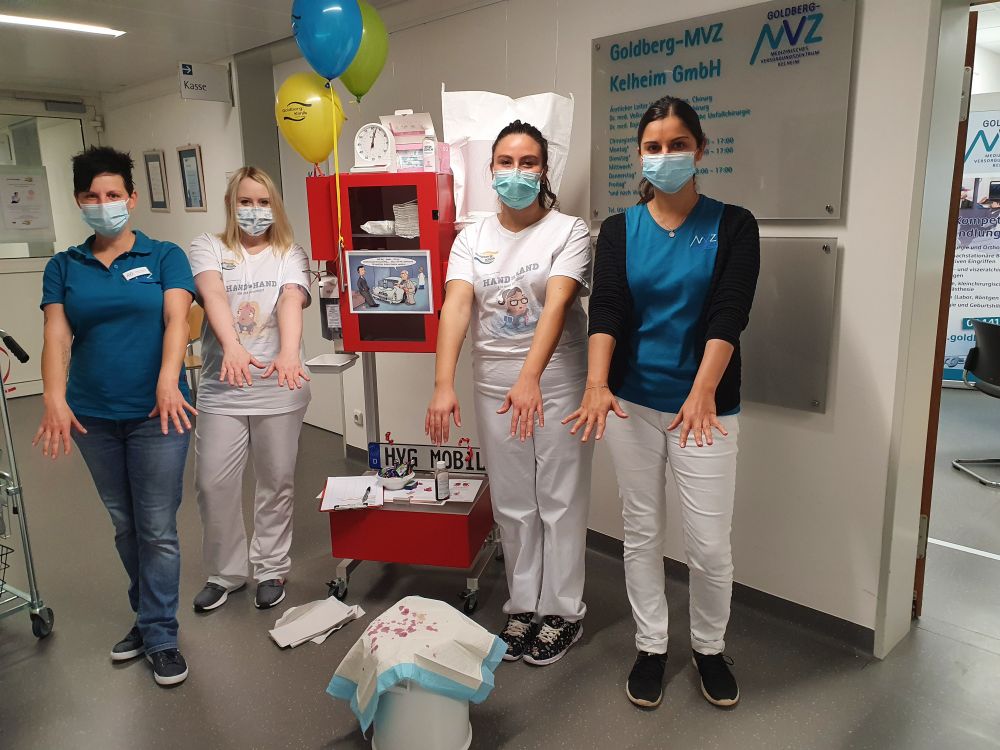 In diesem Jahr, aufgrund der besonderen Situation, nur für Beschäftigte der Goldberg-Klinik. Ute Dautermann und ihr Team informierten in allen Abteilungen und auf den Stationen über die Notwendigkeit einer gründlichen und professionellen Händedesinfektion, um die Weiterverbreitung und Ansteckung mit potentiell gefährlichen Keimen zu verhindern. Beschäftigte konnten u.a. unter UV-Licht kontrollieren, wie gründlich sie ihre Hände mit Desinfektionsmittel desinfiziert hatten.